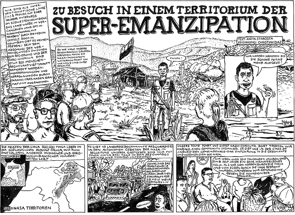 VISITING THE TERRITORY OF SUPER-EMANZIPATION – a comic journey to the autonomous region of the indigenous Nasa in south-west Colombia.