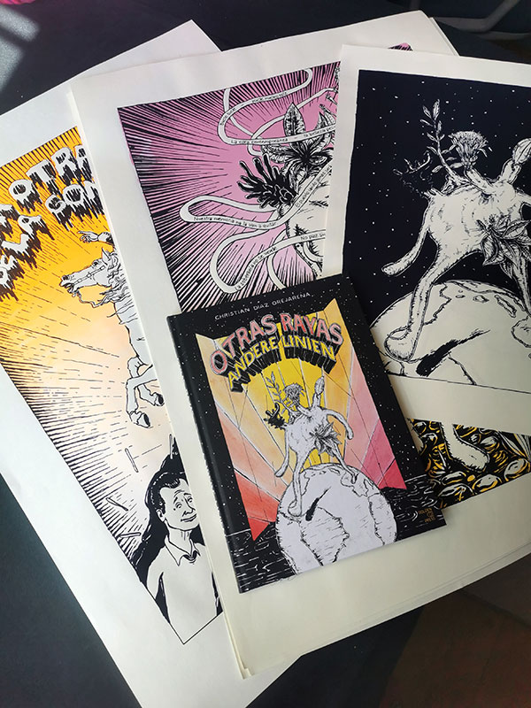 "OTRAS RAYAS / ANDERE LINIEN" fue publicado como novela gráfica en septiembre 2021 con el editorial GOLDEN PRESS en Bremen. Más information y imagenes encuentra abajo o en la pagina del EDITORIAL (en aleman).