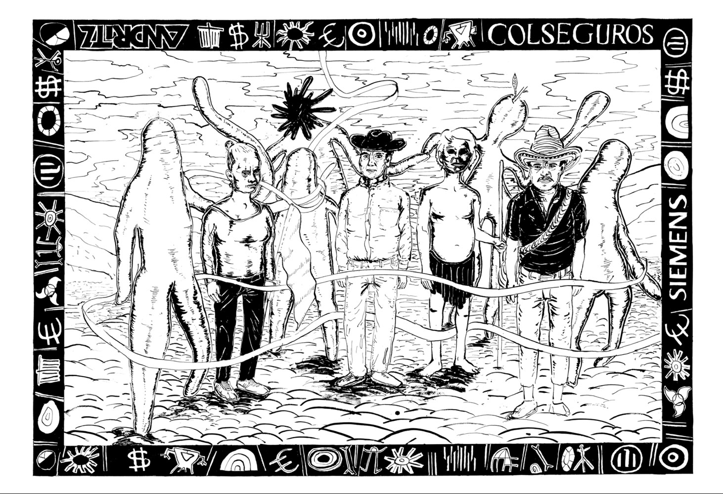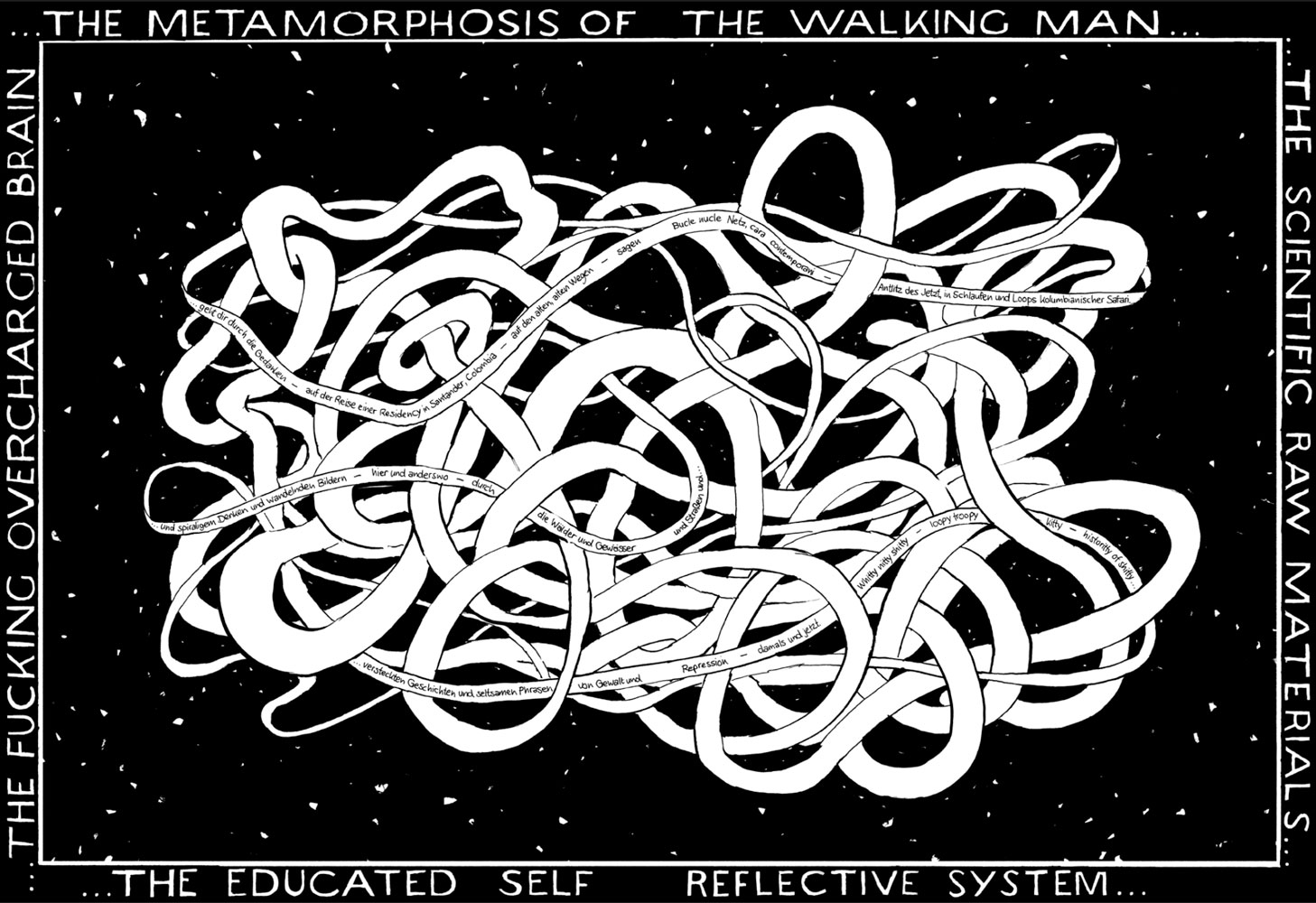 LAS OTRAS RAYAS“ reinterpretates and actualizes the novel „La otra raya del tigre“ by Colombian author Pedro Gomez Valderama from a decolonial perspective. Instead of the german Colonial Buisness Man Geo von Lengerke and his activities in the 19th century Santander, a overcharged european „Researchartist“ during a visit in the same region is the protagonist of the collection of storyfragments.